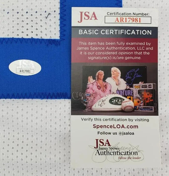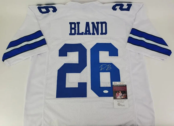Custom on-field style jersey. Everything is sewn on, size XL. Hand-signed by DaRon Bland.This autograph is certified by James Spence Authentication (JSA). It comes with the numbered hologram and matching Certificate of Authenticity.Custom on-field style jerseys are a more affordable option for autograph seekers. These jerseys do not have any brand name or tags and are made in the Philippines. They feature stitched on names and numbers and are made to look very similar to the on-field jerseys that the players wear. These custom jerseys are very commonly used in the memorabilia industry.