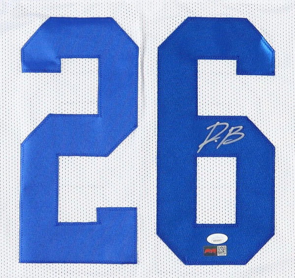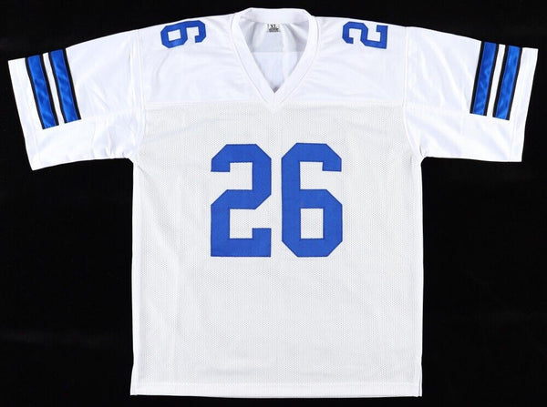 This autographed custom on-field style adult XL jersey has been personally hand-signed by Daron Bland of the Dallas Cowboys.The autograph includes an official James Spence Authentication (JSA) hologram and QR Code Card for authenticity purposes. The signing of this item was witnessed by JSA.Authentication: JSA Hologram with QR Code CardCustom on-field style jerseys are a more affordable option for autograph seekers. These jerseys do not have any brand name or tags and are made in the Philippines. They feature stitched on names and numbers and are made to look very similar to the on-field jerseys that the players wear. These custom jerseys are very commonly used in the memorabilia industry.