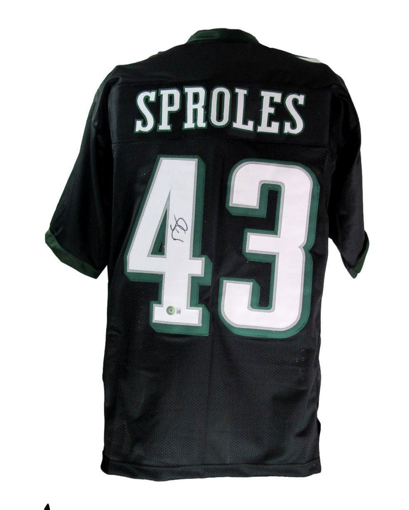 Darren sproles autographed custom football jersey philadelphia eagles size xl. this jersey is authenticated by bas/beckett and includes their tamper-proof sticker.