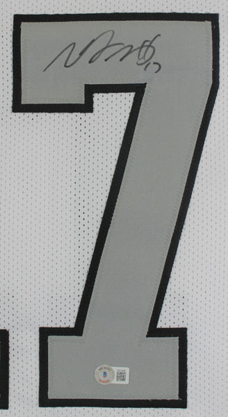 This Autographed White Color Rush Pro Style Jersey has been Personally Signed by Davante Adams of the Las Vegas Raiders. This item is 100% Authentic to include a hologram by Beckett Authentication Services. This item will come with an affixed Beckett Authentication Services (BAS) authentication sticker, which includes a scannable QR code to verify authenticity. Please note that Beckett no longer provides serial-numbered COA cards, and the attached BAS sticker will serve as the complete authentication for this item. This is a BAS Witnessed Protection Program item which means a Beckett Authentication Service representative was present when this item was being signed. We conducted an autograph signing with Davante Adams where multiples of the same item were signed. While the photographs are representative of this item, the size, placement and strength of the signature may vary. Each item is hand signed, therefore, each autograph is unique. This item can be verified through BAS Witnessed. This is a X-Large sized, non-branded, custom-stitched Jersey.