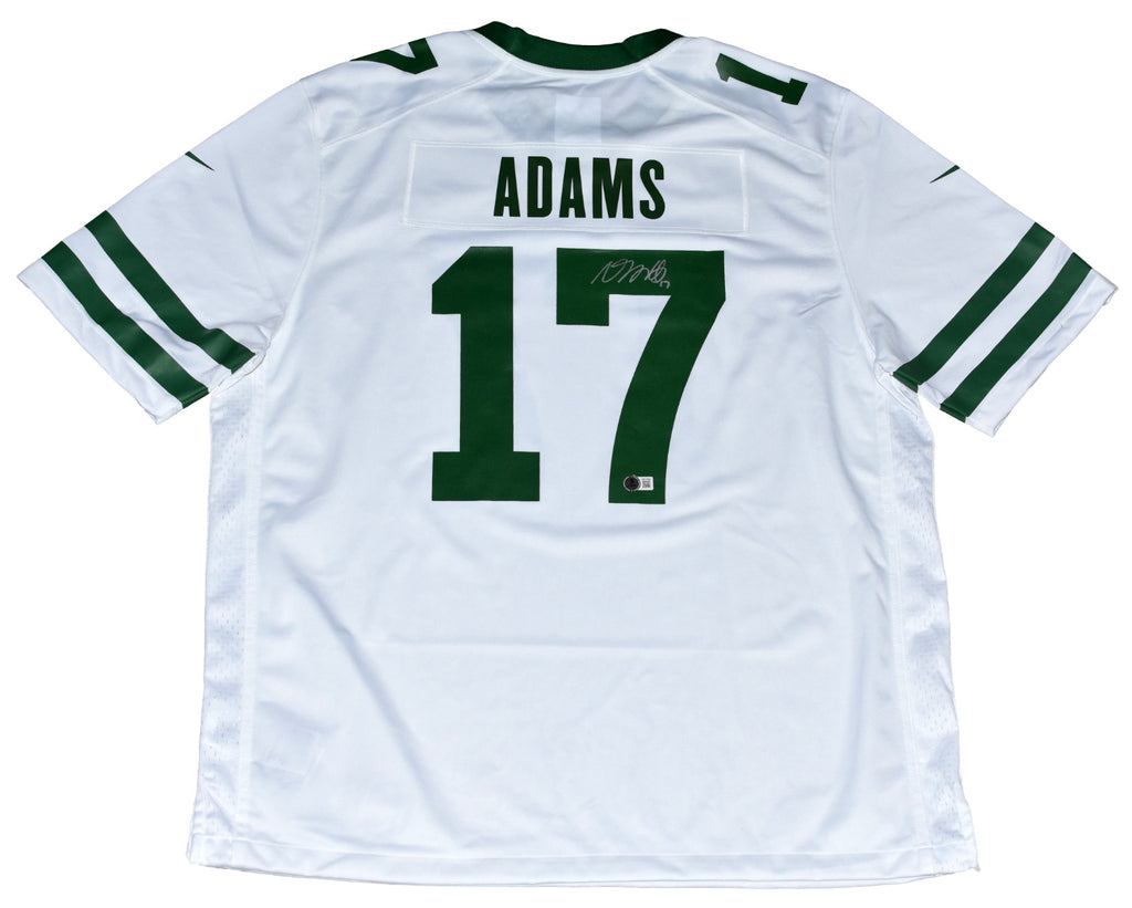 Davante Adams, All-Pro wide receiver for the New York Jets, has hand signed this Nike jersey at a private signing. Jersey is new with tags attached and all letters/numbers are heat sealed. This item is authenticated by Beckett Authentication Services and was signed in the presence of one of their representatives. Their tamper-evident hologram featuring a QR code and serial number is on the item. The authenticity can be verified online by entering the serial number or scanning the QR code.Item pictured may not be the exact item you will receive. It will be similar quality, and we guarantee your satisfaction.