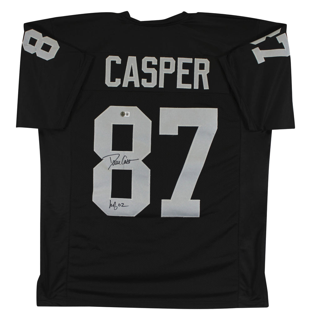 This Autographed Black Pro Style Jersey with the inscription of "HOF 02" has been Personally Signed by Dave Casper of the Las Vegas Raiders. This item is 100% Authentic to include a hologram by Beckett Authentication Services. This item will come with an affixed Beckett Authentication Services (BAS) authentication sticker, which includes a scannable QR code to verify authenticity. Please note that Beckett no longer provides serial-numbered COA cards, and the attached BAS sticker will serve as the complete authentication for this item. This is a BAS Witnessed Protection Program item which means a Beckett Authentication Service representative was present when this item was being signed. We conducted an autograph signing with Dave Casper where multiples of the same item were signed. While the photographs are representative of this item, the size, placement and strength of the signature may vary. Each item is hand signed, therefore, each autograph is unique. This item can be verified through BAS Witnessed. This is a X-Large sized, non-branded, custom-stitched Jersey.