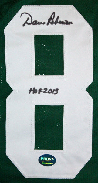 Dave Robinson Autographed Green Pro Style Jersey w/HOF-Prova Auth *Black THIS IS NOT AN NFL JERSEY. THIS HAS NO TAGS, NO LOGOS, NO EMBLEMS. This is a Hand Autographed Jersey of Dave Robinson. This is Custom Made (Non Name Brand) Authentic Style (Stitched Letters and Numbers). This item has a PROVA Authentication, which Comes with a Prova #'ed Sticker hologram. You can view this item on the Prova website. It was signed either at a public autograph appearance or a Private Signing. This is a stock photo of the item. Although you may not receive this exact item, the item you receive is virtually identical and brand new in great shape. Jersey size is XL. .