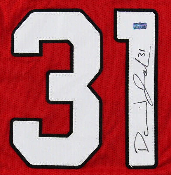 A Arizona Custom Red Jersey hand signed by David Johnson. The item and signature are in excellent condition. David Johnson is a NFL Running back for the Arizona Cardinals. He was drafted 3rd round in the 2015 NFL Draft. In college David played for Northern Iowa. He is a Pro Bowler, & a 2016 First Team All Pro. AUTHENTICATION: The item is accompanied by a Certificate of Authenticity - Serial Numbered and Databased Hologram - Picture of David from the Signing -