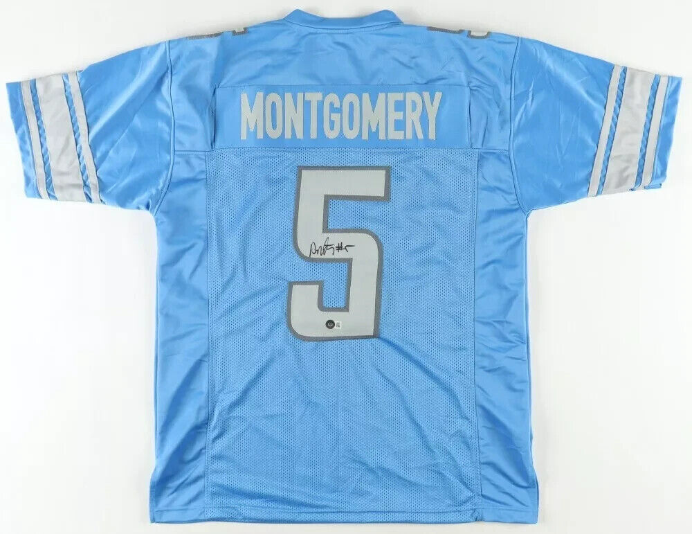 Custom on-field style jersey with everything sewn on, size XL. Hand-signed by David Montgomery.The autograph includes an official Beckett Authentication Services serially numbered hologram for authenticity purposes. The signing of this item was witnessed by Beckett.Authentication: Beckett HologramShop our ebay store / Friendly Confines Collectibles for thousands of different autographed jerseys