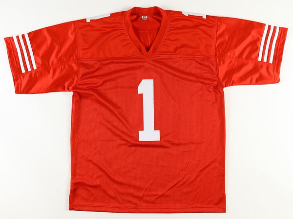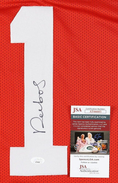 Custom on-field style jersey. Everything is sewn on, size XL. Has been hand-signed by Deebo Samuel. The lot / autograph(s) includes an official James Spence Authentication Services serially-numbered hologram and matching COA for authenticity purposes. Authentication: JSA COA