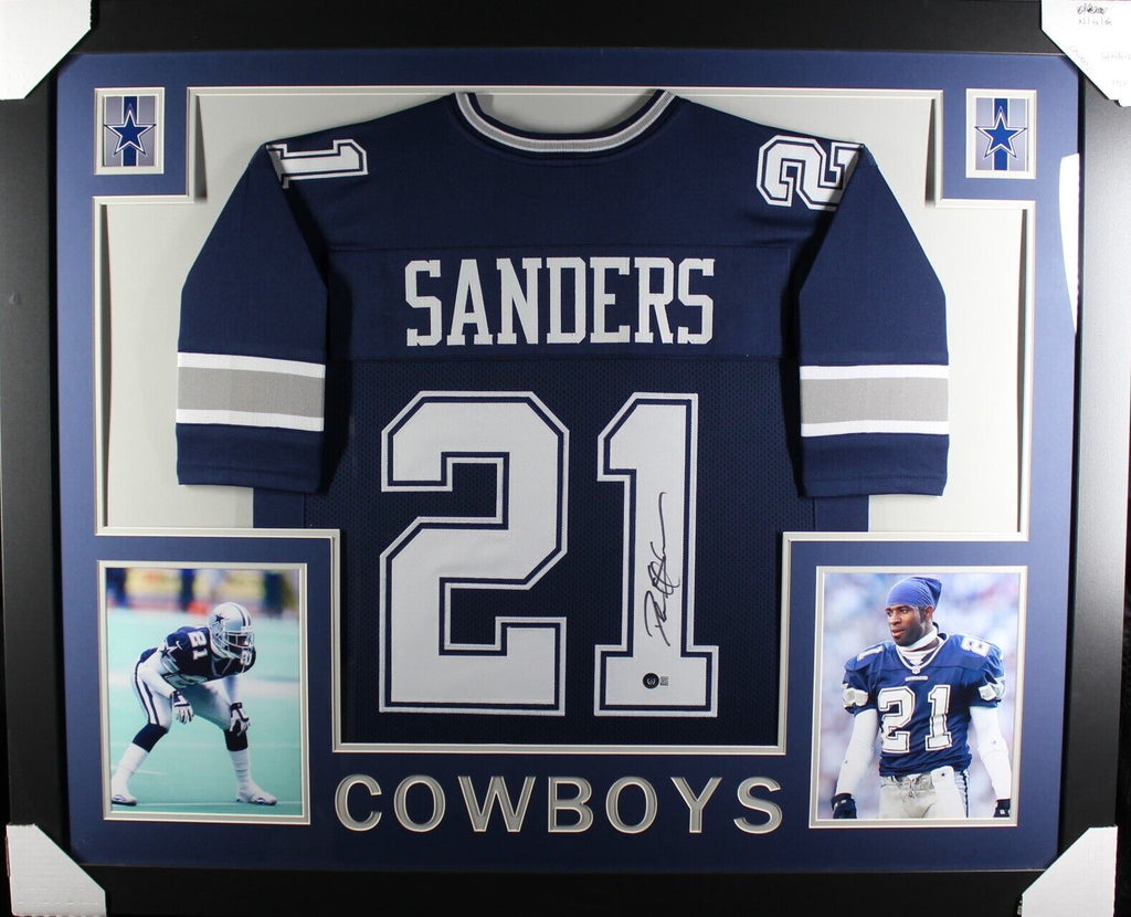 DEION SANDERS (Cowboys blue SKYLINE) Signed Autographed Framed Jersey Beckett