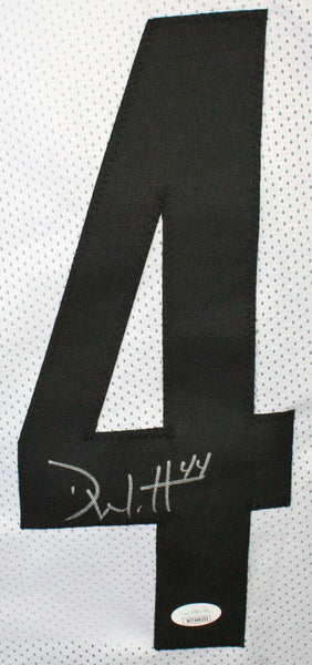 Derek Watt Autographed White Pro Style Jersey- JSA Witnessed *R4 *Silver THIS IS NOT AN NFL JERSEY. THIS HAS NO TAGS, NO LOGOS, NO EMBLEMS. This is a hand autographed Jersey of Derek Watt on a Custom Made (non name brand) Authentic Style (stitched letters and numbers). This item has a James Spence Witness Protection Authentication, which comes with a numbered sticker and a matching JSA Certificate of Authenticity. You can view this item on the SpenceLOA website. It was signed either at a public autograph appearance or a private signing. This is a stock photo of the item. Although you may not receive this exact item, the item you receive is virtually identical and brand new in great shape. Jersey size is XL.