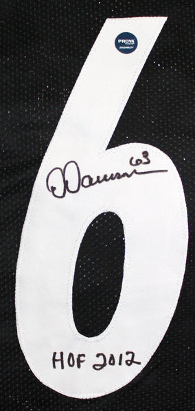 Dermontti Dawson Autographed Black Pro Style Jersey w/ HOF- Prova *Black THIS IS NOT AN NFL JERSEY. THIS HAS NO TAGS, NO LOGOS, NO EMBLEMS. This is a hand autograph of Dermontti Dawson on a Custom Made (non name brand) Authentic Style Jersey with stitched letters and numbers and inscribed with HOF 12. This item has a Prova Authentication, which comes with a numbered sticker hologram. You can view this item on the Prova Authentication website and it shows when and where the item was signed. It was signed either at a public autograph appearance or a private signing. This is a stock photo of the item. Although you may not receive this exact item, the item you receive is virtually identical and brand new in great shape. Jersey size is XL.