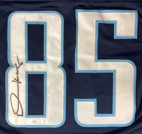 Featured is a Derrick Mason signed custom football jersey. This jersey has been hand signed by Mason and comes with the JSA hologram and certificate of authenticity. This jersey features professionally sewn letters and numbers and is size XL. This jersey has no team tags or emblems and is intended as a sports collectible. This jersey would make a great addition to any sports memorabilia collection! SPECIFICATIONS Autographed By: Derrick Mason Team: Tennessee Titans Sport: Football Authentication: James Spence Authentication (JSA)