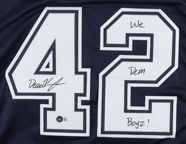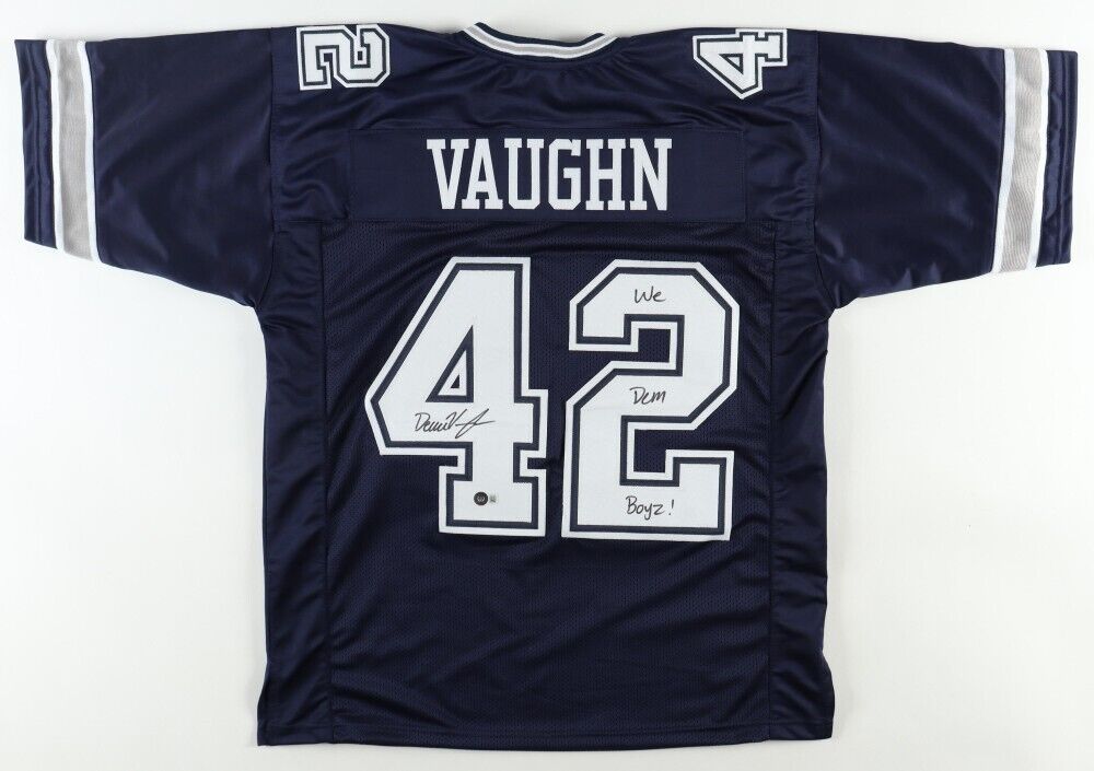 Custom on-field style jersey. Everything is sewn on, size adult XL. Hand-signed and inscribed by Deuce Vaughn.The autograph includes an official Beckett Authentication Services serially numbered hologram for authenticity purposes. The signing of this item was witnessed by Beckett.Authentication: Beckett HologramCustom on-field style jerseys are a more affordable option for autograph seekers. These jerseys do not have any brand name or tags and are made in the Philippines. They feature stitched on names and numbers and are made to look very similar to the on-field jerseys that the players wear. These custom jerseys are very commonly used in the memorabilia industry.