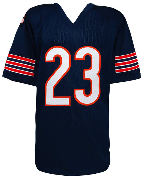 Devin Hester signed navy custom football jersey. Item comes with a Schwartz Sports Memorabilia tamper-proof numbered hologram and Certificate of Authenticity which can be verified online. Jersey is size XL.