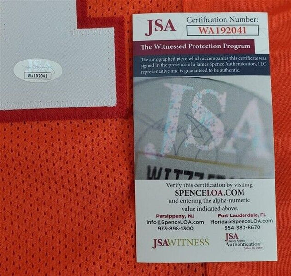 Custom on-field style jersey. Everything sewn on, size XL. Hand-signed and Inscribed in black felt-tip pen by Dexter Jackson. The lot / autograph(s) includes an official James Spence Authentication (JSA) hologram and matching COA for authenticity purposes. The signing of this item was witnessed by JSA.Authentication: JSA COA
