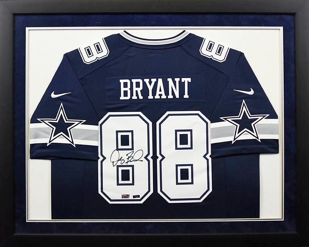 Dez Bryant, former star wide receiver for the Dallas Cowboys, has hand signed this Nike Limited jersey at a private signing. Jersey is new/unworn and all letters/numbers are sewn-on. It comes professionally framed in a black wood frame and double matted in Dallas Cowboys colors. This item comes with a certificate of authenticity (COA) from Panini Authentic, the exclusive memorabilia company for Dez Bryant. You will receive a COA along with a matching serial-numbered holograms.Item pictured may not be the exact item you will receive. It will be similar quality, and we guarantee your satisfaction.