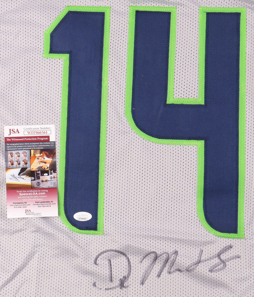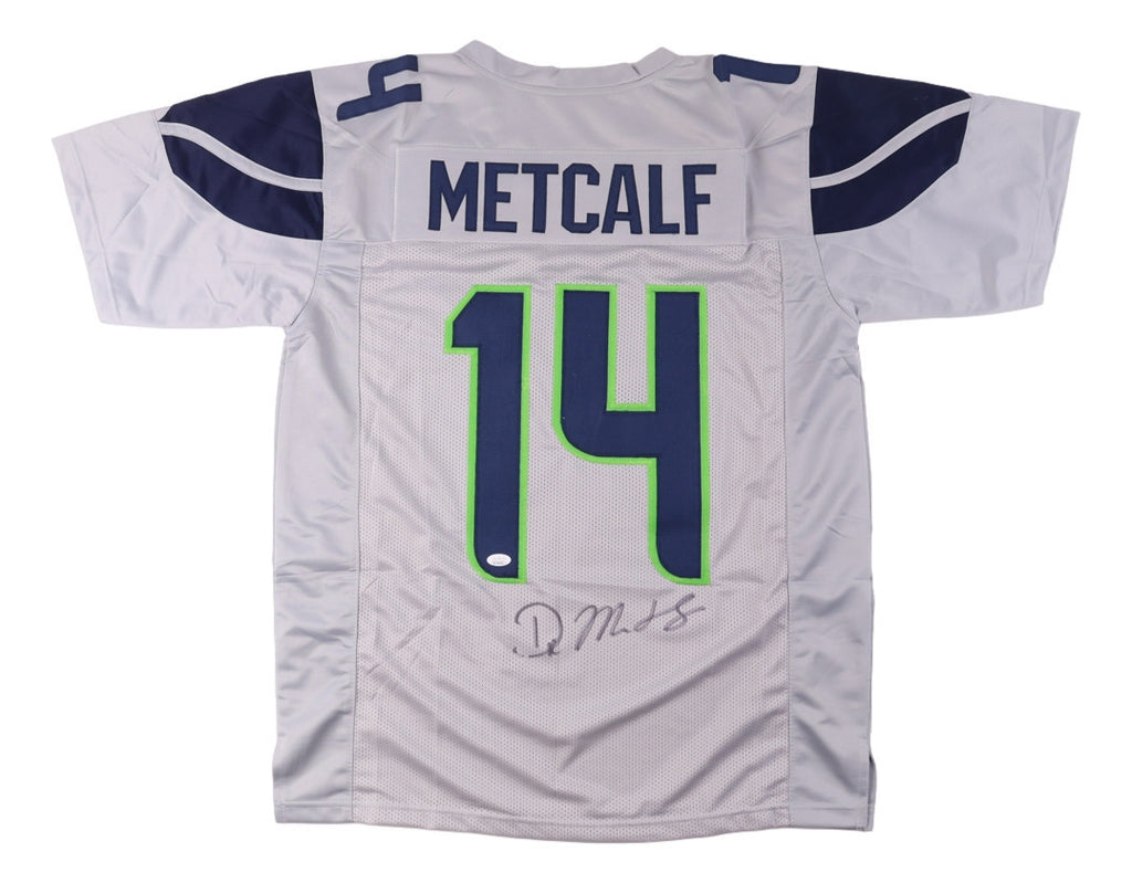 Featured is a DK Metcalf signed custom football jersey. This jersey has been hand signed by Metcalf and comes with the JSA hologram and certificate of authenticity. This jersey features professionally sewn letters and numbers and is size XL. This jersey has no team tags or emblems and is intended as a sports collectible. This jersey would make a great addition to any sports memorabilia collection! SPECIFICATIONS Autographed By: DK Metcalf Team: Seattle Seahawks Sport: Football Authentication: James Spence Authentication (JSA)