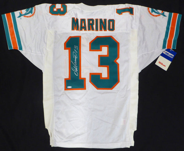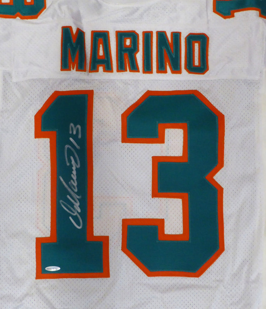 This is a White 1994 Wilson Authentic Miami Dolphins Jersey that has been hand signed by Dan Marino. This jersey is Size 48. This item has been certified authentic by Upper Deck Authentication (UDA) and comes with their tamper-proof sticker BUT is missing the matching certificate of authenticity.