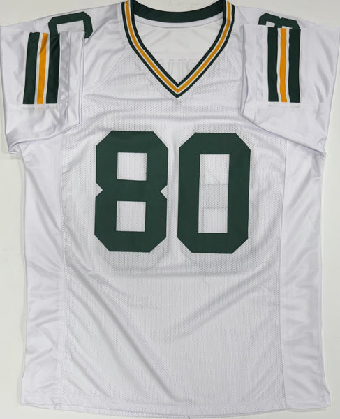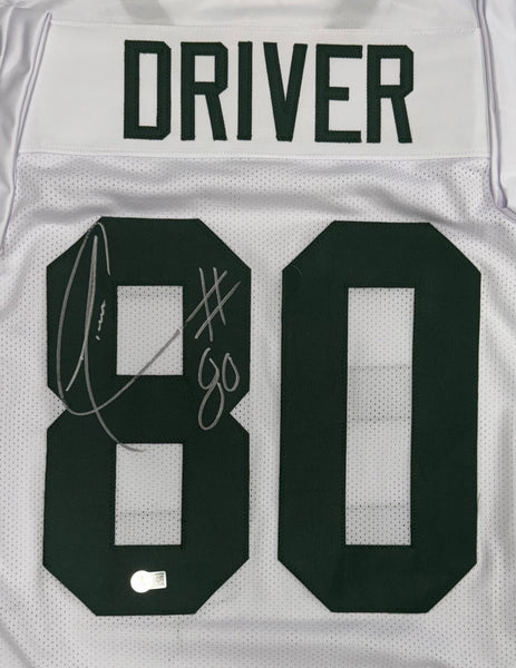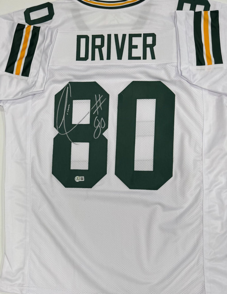 Custom Replica Jersey (XL) hand signed by Green Bay Packers All Time Leading wide receiver DONALD DRIVER. The signature is in Silver paint pen. Driver is the franchise record holder in Receptions and Receiving Yards and was a 2017 Packer Hall of Famer inductee! This jersey was signed at a private signing with us and would make a great addition to any Packers collection! Again this custom jersey is size XL and all letters and numbers are sewn on.This autograph is guaranteed to be 100% authentic and will include a COA from Beckett Authentication.