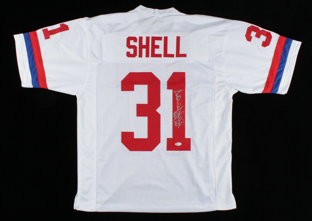 Custom on-field style jersey. Everything sewn on, size XL. Hand-signed and inscribed by Donnie Shell (HOF).The lot / autograph(s) includes an official Beckett Authentication Services serially-numbered hologram and matching COA for authenticity purposes. The signing of this item was witnessed by Beckett.Authentication: Beckett COA