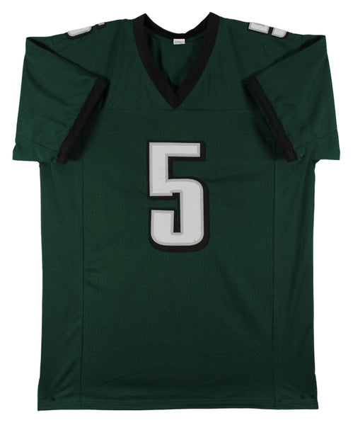 This Autographed Green Pro Style Jersey has been Personally Signed by Donovan McNabb of the Philadelphia Eagles. This item is 100% Authentic to include a hologram by Beckett Authentication Services. This item will come with the new Beckett Authentication hologram that has a scannable QR code rather than the traditional COA. If you would like to have a COA, you are welcome to reach out to Beckett for a printed certification once you receive your item. This is a BAS Witnessed Protection Program item which means a Beckett Authentication Service representative was present when this item was being signed. We conducted an autograph signing with Donovan McNabb where multiples of the same item were signed. While the photographs are representative of this item, the size, placement and strength of the signature may vary. Each item is hand signed, therefore, each autograph is unique. This item can be verified through BAS Witnessed. This is a X-Large sized, non-branded, custom-stitched Jersey.