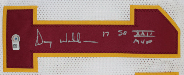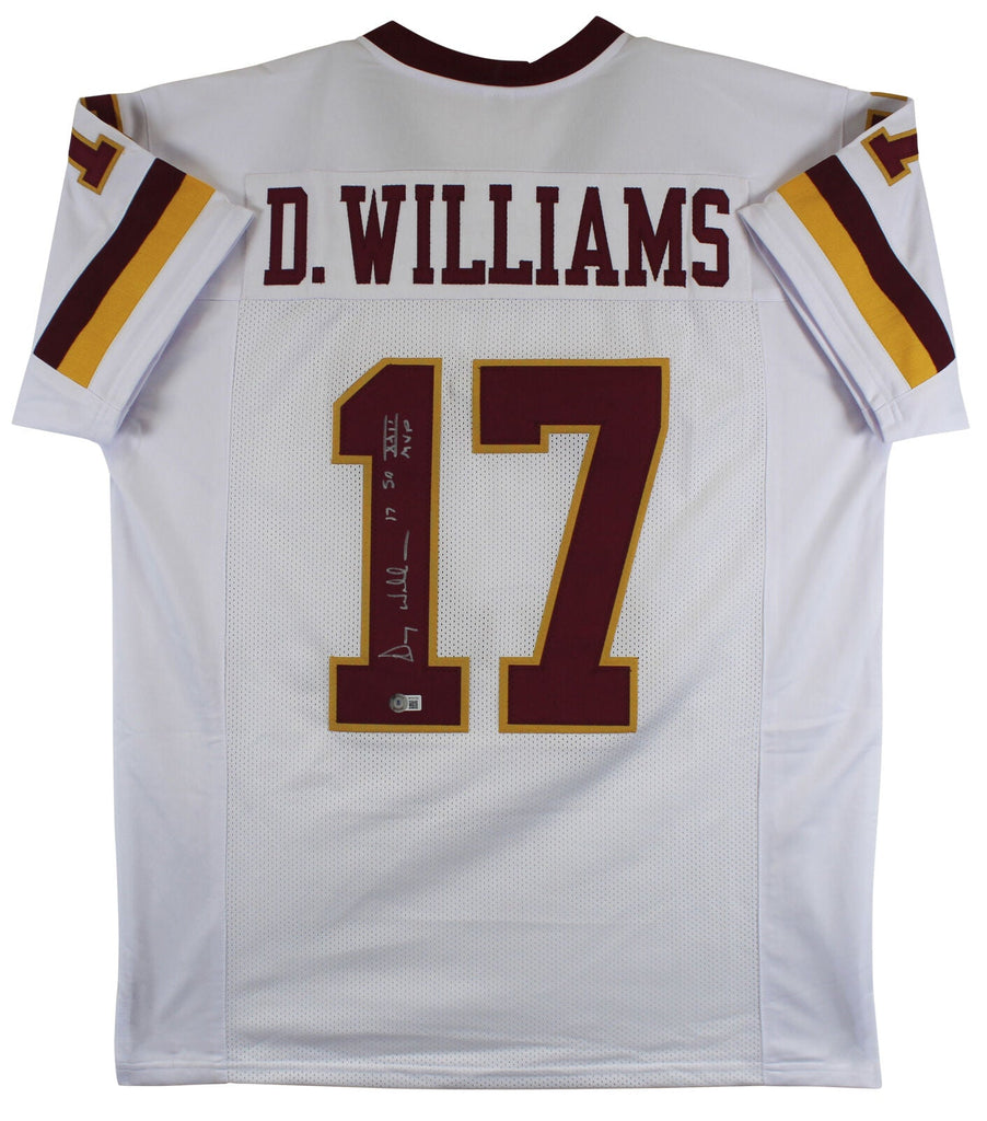 This Autographed Maroon Pro Style Jersey with the inscription of "SB XXII MVP" has been Personally Signed by Doug Williams of the Washington Commanders. This item is 100% Authentic to include a hologram by Beckett Authentication Services. This item may come with the new Beckett Authentication hologram that has a scannable QR code rather than the traditional COA. If you would like to have a COA, you are welcome to reach out to Beckett for a printed certification once you receive your item. This is a BAS Witnessed Protection Program item which means a Beckett Authentication Service representative was present when this item was being signed. We conducted an autograph signing with Doug Williams where multiples of the same item were signed. While the photographs are representative of this item, the size, placement and strength of the signature may vary. Each item is hand signed, therefore, each autograph is unique. This item can be verified through BAS Witnessed. This is a X-Large sized, non-branded, custom-stitched Jersey.