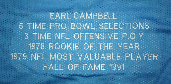 Earl Campbell Autographed Blue Pro Style Stat1 Jersey With HOF- JSA W *Black