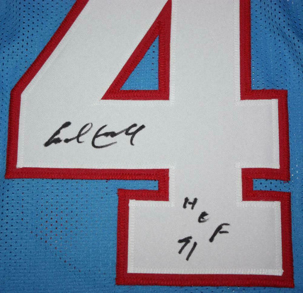 THIS IS NOT AN NFL JERSEY. This HAS NO TAGS, NO LOGOS, NO EMBLEMS. This is an Earl Campbell of the Houston Oilers hand autographed custom made (Non Name Brand) authentic style (Stitched Letters and Numbers) jersey inscribed with HOF. This item has a James Spence Witnessed Authentication, which comes with a JSA numbered sticker and a matching JSA Certificate of Authenticity. You can view this item on the SpenceLOA website, it shows when and where the item was signed. It was signed either at a public autograph appearance or a private signing. This is a stock photo of the item. Although you may not receive this exact item, the item you receive is virtually identical, brand new, and in great shape. We appreciate your interest in our items and we hope that we can make all transactions THIS IS NOT AN NFL JERSEY. This HAS NO TAGS, NO LOGOS, NO EMBLEMS. This is an Earl Campbell of the Houston Oilers hand autographed custom made (Non Name Brand) authentic style (Stitched Letters and Numbers) jersey inscribed with HOF. This item has a James Spence Witnessed Authentication, which comes with a JSA numbered sticker and a matching JSA Certificate of Authenticity. You can view this item on the SpenceLOA website, it shows when and where the item was signed. It was signed either at a public autograph appearance or a private signing. This is a stock photo of the item. Although you may not receive this exact item, the item you receive is virtually identical, brand new, and in great shape. Jersey size is XL.