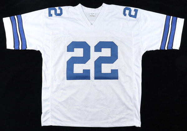 Custom on-field style jersey. Everything is sewn on, size XL. Hand-signed by Emmitt Smith (HOF).The lot / autograph(s) includes an official James Spence Authentication (JSA) hologram and matching COA as well as an official Prova hologram for authenticity purposes. The signing of this item was witnessed by JSA.Authentication: JSA COA & Prova Hologram
