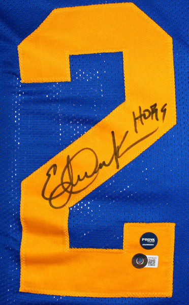 Eric Dickerson Autographed Blue Pro Style STAT Jersey w/ HOF - Beckett W Hologram *Black THIS IS NOT AN NFL JERSEY. THIS HAS NO TAGS, NO LOGOS, NO EMBLEMS. This is a hand autograph of Eric Dickerson on a Custom Made (non name brand) Authentic Style Jersey with stitched letters and numbers. This item has a Beckett Witnessed Authentication, which comes with a numbered hologram and a QR code for verification. You can view this item on the Beckett Authentication website, it shows when and where the item was signed. It was signed either at a public autograph appearance or a private signing. This is a stock photo of the item. Although you may not receive this exact item, the item you receive is virtually identical and brand new in great shape. Jersey size is XL.