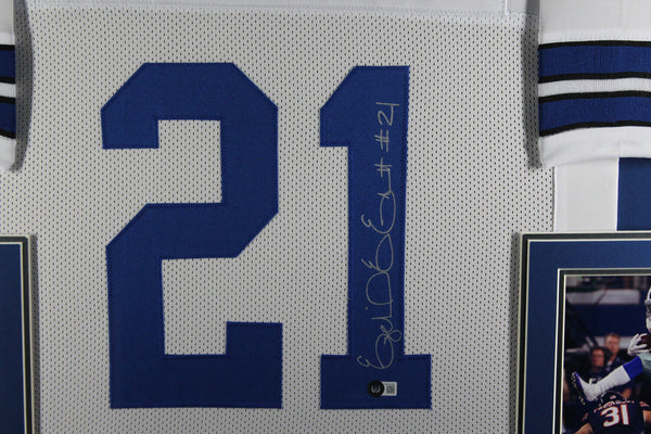 Ezekiel Elliott Autographed Framed Pro Style White XL Jersey Beckett 38044 The number in the listing title is just an inventory sku for our records and is not the authentication number. The item pictured is a stock photo unless otherwise noted. This is a professionally framed custom size white XL jersey with sewn on name and numbers that was personally autographed by Ezekiel Elliott. This jersey measures approximately 42" x 34" and includes a certificate of authenticity from Beckett Authentication Services (BAS) and Denver Autographs.
