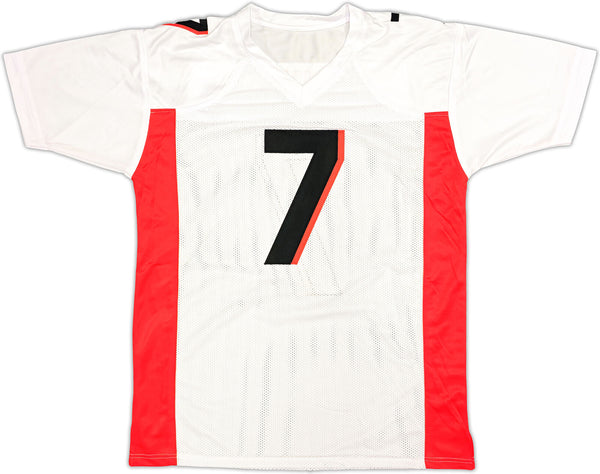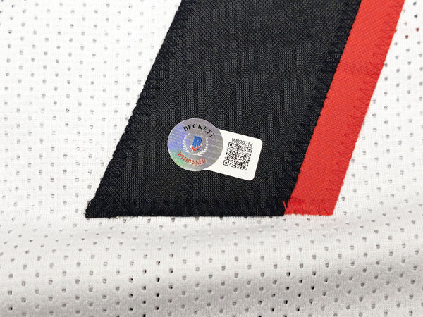 This is a White Jersey that has been hand signed by Bijan Robinson. This is a custom jersey with no name brand. The approximate size is XL. It has nice sewn in name and numbers. This item was inscribed "Dirty Bird." This item has been witnessed and certified authentic by Beckett Authentication (BAS) and comes with their tamper-proof witness sticker.