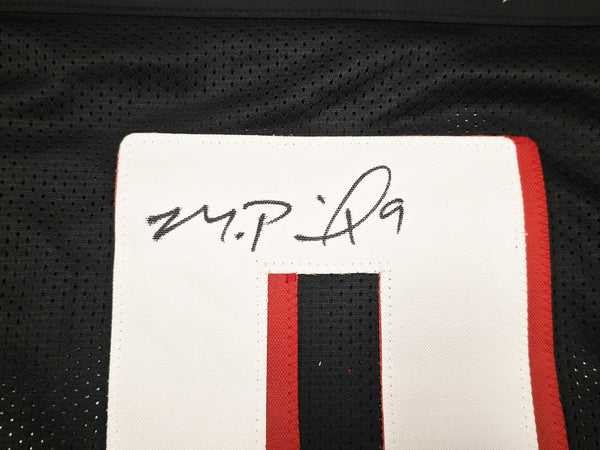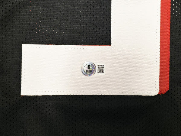 This is a Black Jersey that has been hand signed by Michael Penix Jr. This is a custom jersey with no name brand. The approximate size is XL. It has nice sewn in name and numbers. This item has been witnessed and certified authentic by Beckett Authentication (BAS) and comes with their tamper-proof witness hologram.