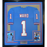 Framed Autographed/Signed Cameron Cam Ward 35x39 Retro Light Blue Jersey JSA COA