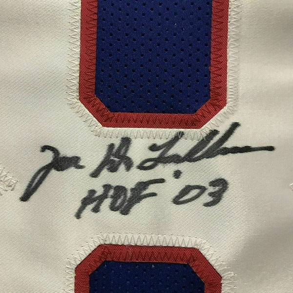 FRAMED Autographed/Signed JOE DELAMIELLEURE 33x42 Buffalo Blue Jersey JSA COA The item is professionally framed & matted with two 8x10 photos, measures 33"x42" and is ready to be hung in your man cave! NOTE: COA card will be mounted on the back of the frame, not inside it on top of the jersey as seen in the picture.