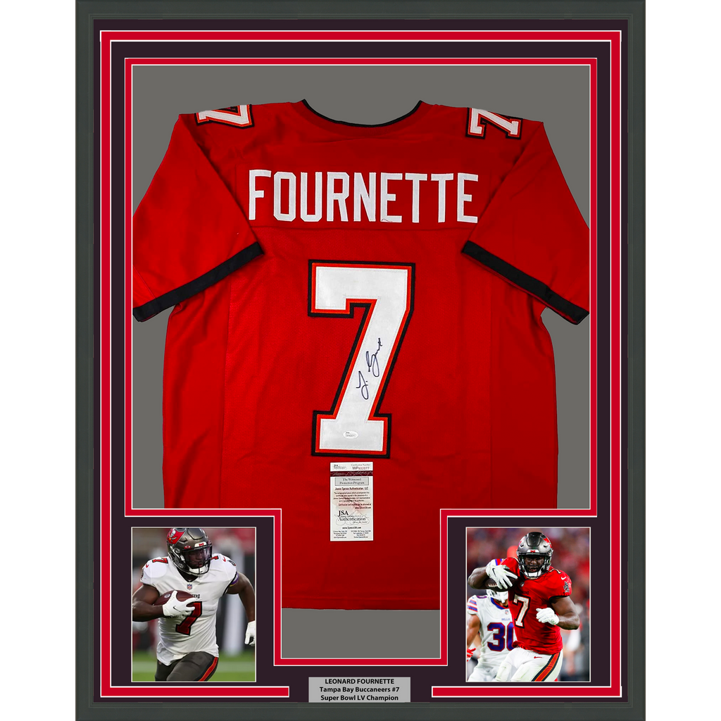 Framed Autographed/Signed Leonard Fournette 33x42 Tampa Bay Red Jersey JSA COA