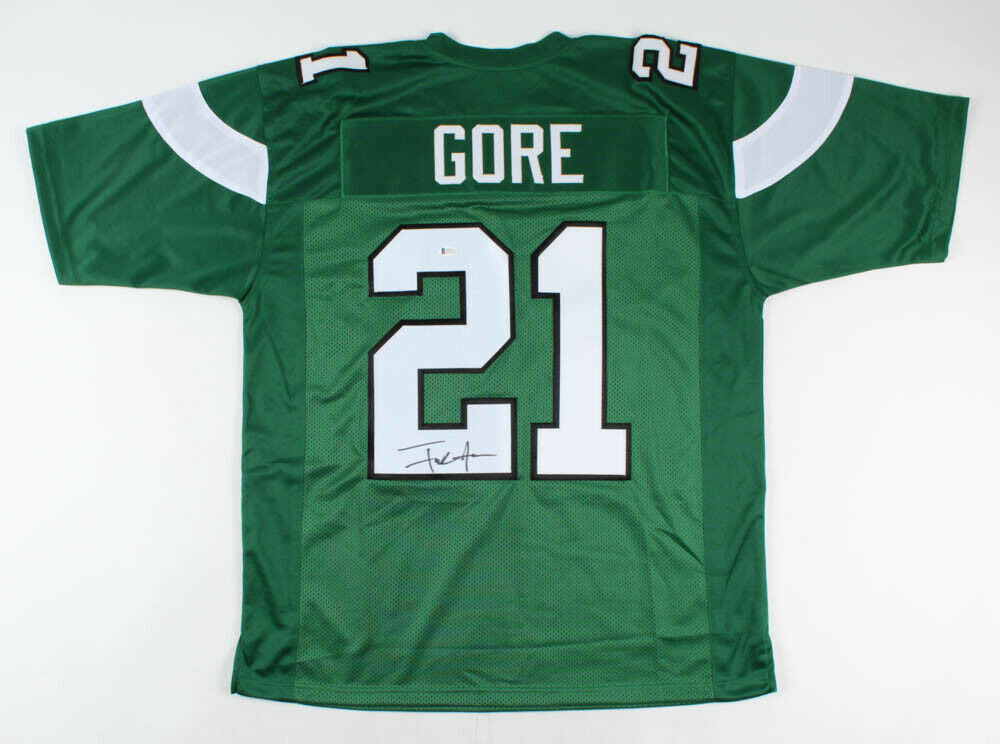 Custom on-field style jersey. Everything sewn on, size XL. Hand-signed by Frank Gore.The lot / autograph(s) includes an official Beckett Authentication Services serially numbered hologram for authenticity purposes. The signing of this item was witnessed by Beckett.Authentication: Beckett Hologram