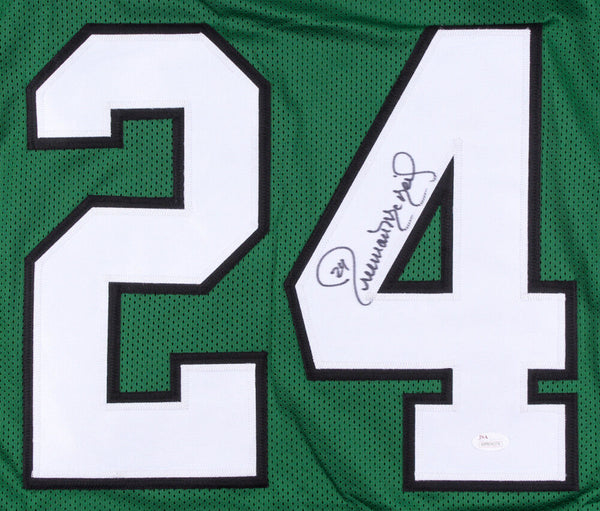 Custom on-field style jersey. Everything is sewn on, size XL. Hand-signed in black felt-tip pen by Freeman Mcneil. The autograph includes an official James Spence Authentication (JSA) hologram and matching COA for authenticity purposes.Authentication: JSA COA