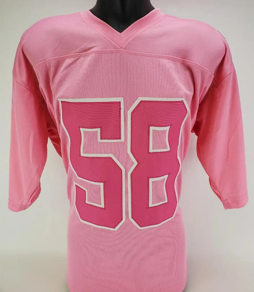 This autographed adult XL Custom on-field style Breast Cancer Awareness jersey has been personally hand-signed by Gary Brackett of the Indianapolis Colts.This autograph is certified by James Spence Authentication's (JSA) Witnessed Protection Program. That means that a JSA representative was present when this item was signed. It comes with the numbered hologram and matching Certificate of Authenticity.Custom on-field style jerseys are a more affordable option for autograph seekers. These jerseys do not have any brand name or tags and are made in the Philippines. They feature stitched on names and numbers and are made to look very similar to the on-field jerseys that the players wear. These custom jerseys are very commonly used in the memorabilia industry.