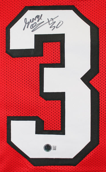 George Odum Authentic Signed Red Pro Style Jersey w/ Dropshadow BAS Witnessed