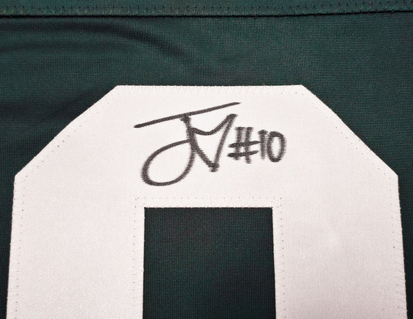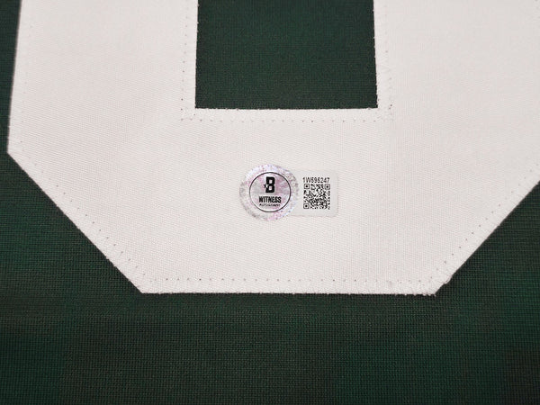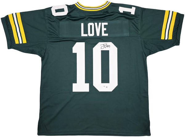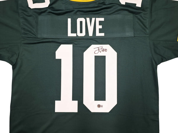 This is a Green Jersey that has been hand signed by Jordan Love. This is a custom jersey with no name brand. The approximate size is XL. It has nice sewn in name and numbers. This item has been witnessed and certified authentic by Beckett Authentication (BAS) and comes with their tamper-proof witness hologram.