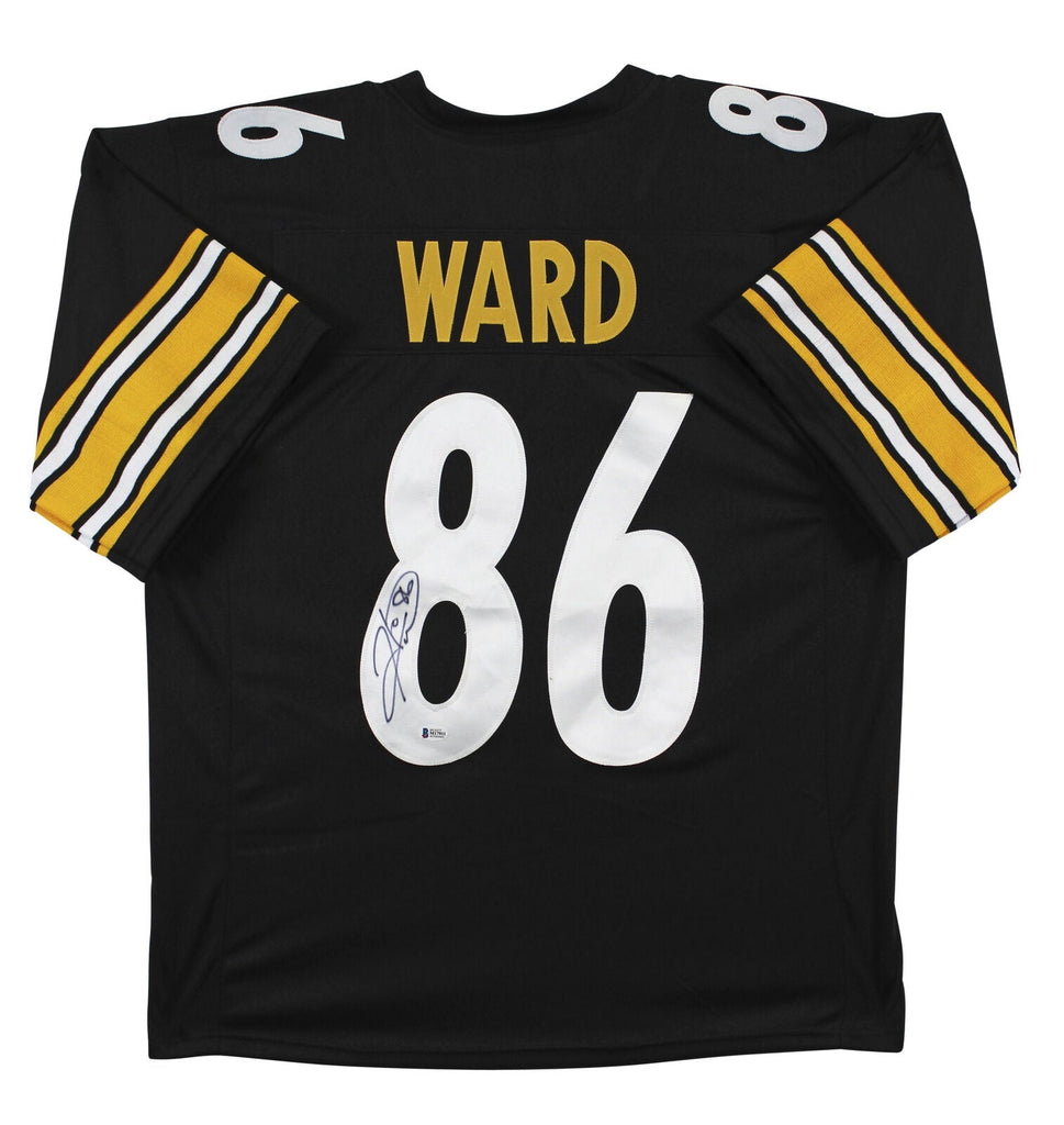 This Autographed Signed On #8 Black Pro Style Jersey has been Personally Signed by Hines Ward of the Pittsburgh Steelers. This item is 100% Authentic to include a hologram by Beckett Authentication Services. This item will come with an affixed Beckett Authentication Services (BAS) authentication sticker, which includes a scannable QR code to verify authenticity. Please note that Beckett no longer provides serial-numbered COA cards, and the attached BAS sticker will serve as the complete authentication for this item. This is a BAS Witnessed Protection Program item which means a Beckett Authentication Service representative was present when this item was being signed. We conducted an autograph signing with Hines Ward where multiples of the same item were signed. While the photographs are representative of this item, the size, placement and strength of the signature may vary. Each item is hand signed, therefore, each autograph is unique. This item can be verified through BAS Witnessed. This is a X-Large sized Jersey.