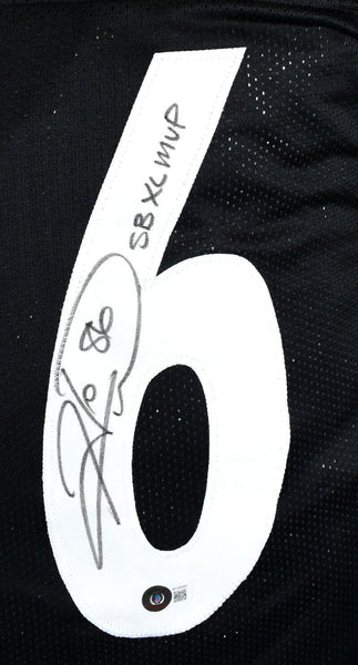 Hines Ward Autographed Black Pro Style Jersey w/SB MVP- Beckett W Hologram *Black THIS IS NOT AN NFL JERSEY. THIS HAS NO TAGS, NO LOGOS, NO EMBLEMS. This is a Hines Ward of the Pittsburgh Steelers hand autographed custom made (non name brand) authentic style jersey (stitched letters and numbers). This item has a Beckett Witnessed Authentication, which comes with a numbered hologram and a QR code for verification. You can view this item on the Beckett Authentication website, it shows when and where the item was signed. It was signed either at a public autograph appearance or a private signing. This is a stock photo of the item. Although you may not receive this exact item, the item you receive is virtually identical, brand new, and in great shape. Jersey size is XL.