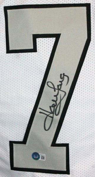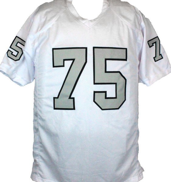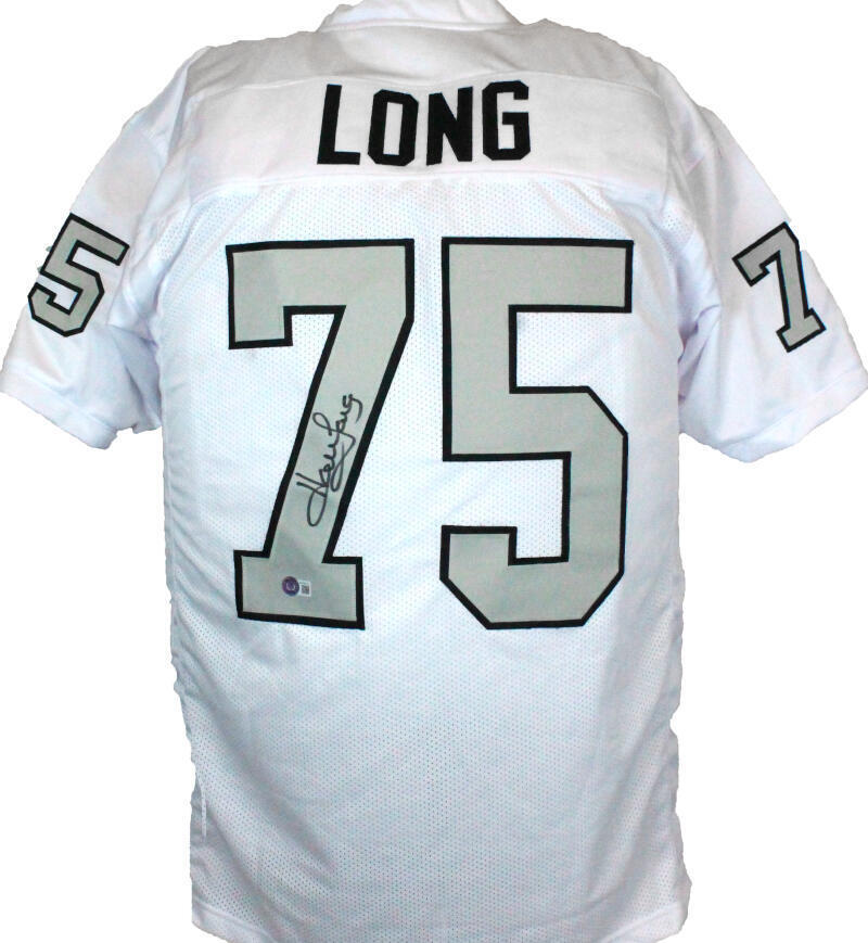 Howie Long Autographed White Pro Style Jersey Grey #-Beckett W Hologram *Black THIS IS NOT AN NFL JERSEY. THIS HAS NO TAGS, NO LOGOS, NO EMBLEMS. This is a hand autograph of Howie Long on a custom (Non Name Brand) Authentic style Jersey with stitched letters and numbers. This item has a Beckett Witnessed Authentication, which comes with a Beckett numbered hologram and a QR code for verification. You can view this item on the Beckett Authentication website, it shows when and where the item was signed. It was signed either at a public autograph appearance or a private signing. This is a stock photo of the item. Although you may not receive this exact item, the item you receive is virtually identical and brand new in great shape. Jersey size is XL.