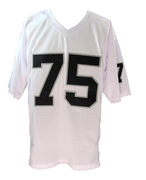 Howie Long HOF Autographed White Custom Football Jersey Oakland Raiders Size XL. This jersey is authenticated by BAS/Beckett and includes their Tamper-proof Hologram Sticker.