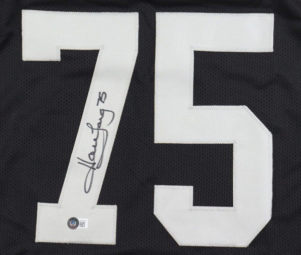 Custom on-field style jersey with everything is sewn on, size Adult XL. Hand-signed by Howie Long (HOF).The autograph includes an official Beckett Authentication Services serially numbered hologram and QR Code Card for authenticity purposes. The signing of this item was witnessed by Beckett.Authentication: Beckett Hologram with QR Code Card