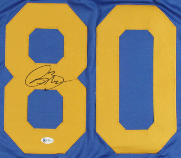 Custom on-field style jersey. Everything is sewn on, size XL. Has been hand-signed by Isaac Bruce (HOF).The lot / autograph(s) includes an official Beckett Authentication Services serially-numbered hologram for authenticity purposes. The signing of this item was witnessed by Beckett.Authentication: Beckett Hologram