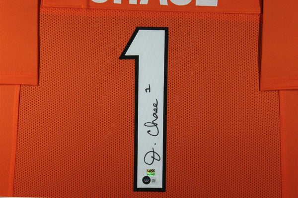 JA'MARR CHASE (Bengals orange TOWER) Signed Autographed Framed Jersey Beckett