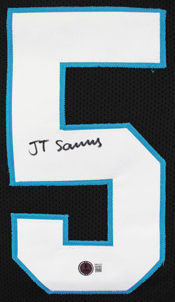 This Autographed Black Pro Style Jersey has been Personally Signed by Ja'Tavion Sanders of the Carolina Panthers. This item is 100% Authentic to include a hologram by Beckett Authentication Services. This item will come with an affixed Beckett Authentication Services (BAS) authentication sticker, which includes a scannable QR code to verify authenticity. Please note that Beckett no longer provides serial-numbered COA cards, and the attached BAS sticker will serve as the complete authentication for this item. This is a BAS Witnessed Protection Program item which means a Beckett Authentication Service representative was present when this item was being signed. We conducted an autograph signing with Ja'Tavion Sanders where multiples of the same item were signed. While the photographs are representative of this item, the size, placement and strength of the signature may vary. Each item is hand signed, therefore, each autograph is unique. This item can be verified through BAS Witnessed. This is a X-Large sized, non-branded, custom-stitched Jersey.
