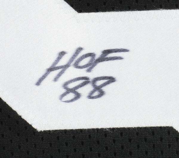 Featured is a Jack Ham signed custom black pro style football jersey, in which he added the "HOF 88" inscription. This jersey was hand signed by Jack Ham in the presence of a Beckett authentication representative. Included with the jersey is a Beckett witnessed hologram and certificate of authentication. This jersey would make a great addition to any sports memorabilia collection. This jersey has hand sewn numbers and letter and has NO logos or any affiliation with any manufacturer or team. It is simply intended as an autographed collectible.. SPECIFICATIONS Autographed By: Jack Ham Team: Pittsburgh Steelers Sport: Football Authentication: Beckett Authentication Services