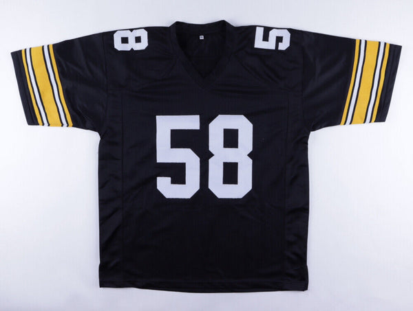 Custom on-field style jersey. Everything sewn on, size XL. Hand-signed in black felt-tip pen by Jack Lambert (HOF). The autograph includes an official James Spence Authentication (JSA) hologram for authenticity purposes.Authentication: JSA Hologram
