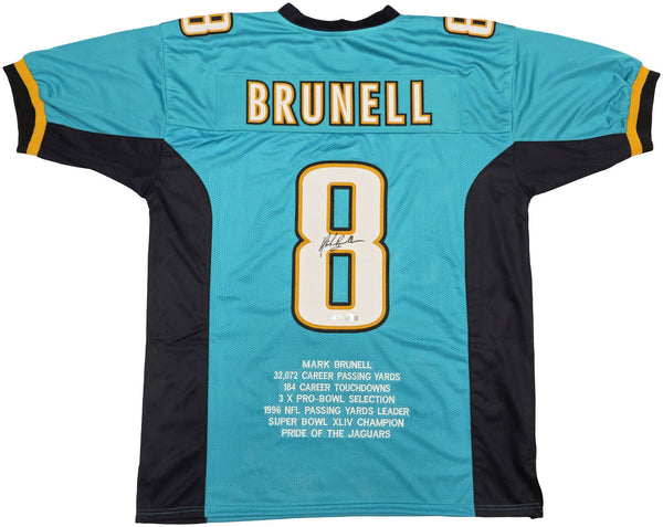 JACKSONVILLE JAGUARS MARK BRUNELL AUTOGRAPHED TEAL STAT JERSEY BECKETT QR 234539